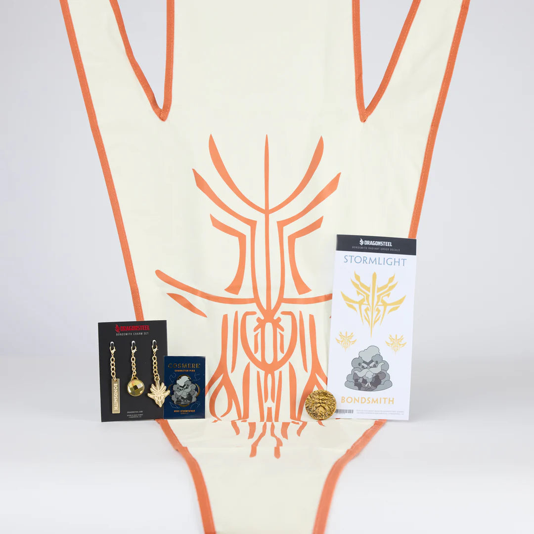 The Bondsmith Radiant Pack is a carefully curated collection inspired by Brandon Sanderson’s radiant order. It includes a distinctive Bondsmith banner, a set of thematic stickers, a unique commemorative coin, and a detailed charm set. Crafted for enthusiasts and collectors, this pack celebrates the unity and strength symbolized by the Bondsmiths, offering exclusive memorabilia that deepens your connection to the Words of Radiance universe.