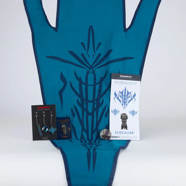 The Elsecaller Radiant Pack brings the magic of Brandon Sanderson's Words of Radiance to your collection. Featuring a charm set, pin, coin, sticker, and banner, each piece is thoughtfully designed to capture the essence of the Elsecaller Radiants. Perfect for fans eager to showcase their passion, this pack offers unique, high-quality memorabilia that connects you deeper to the epic story. Don't miss the chance to own these exclusive treasures and celebrate your favorite characters in style.