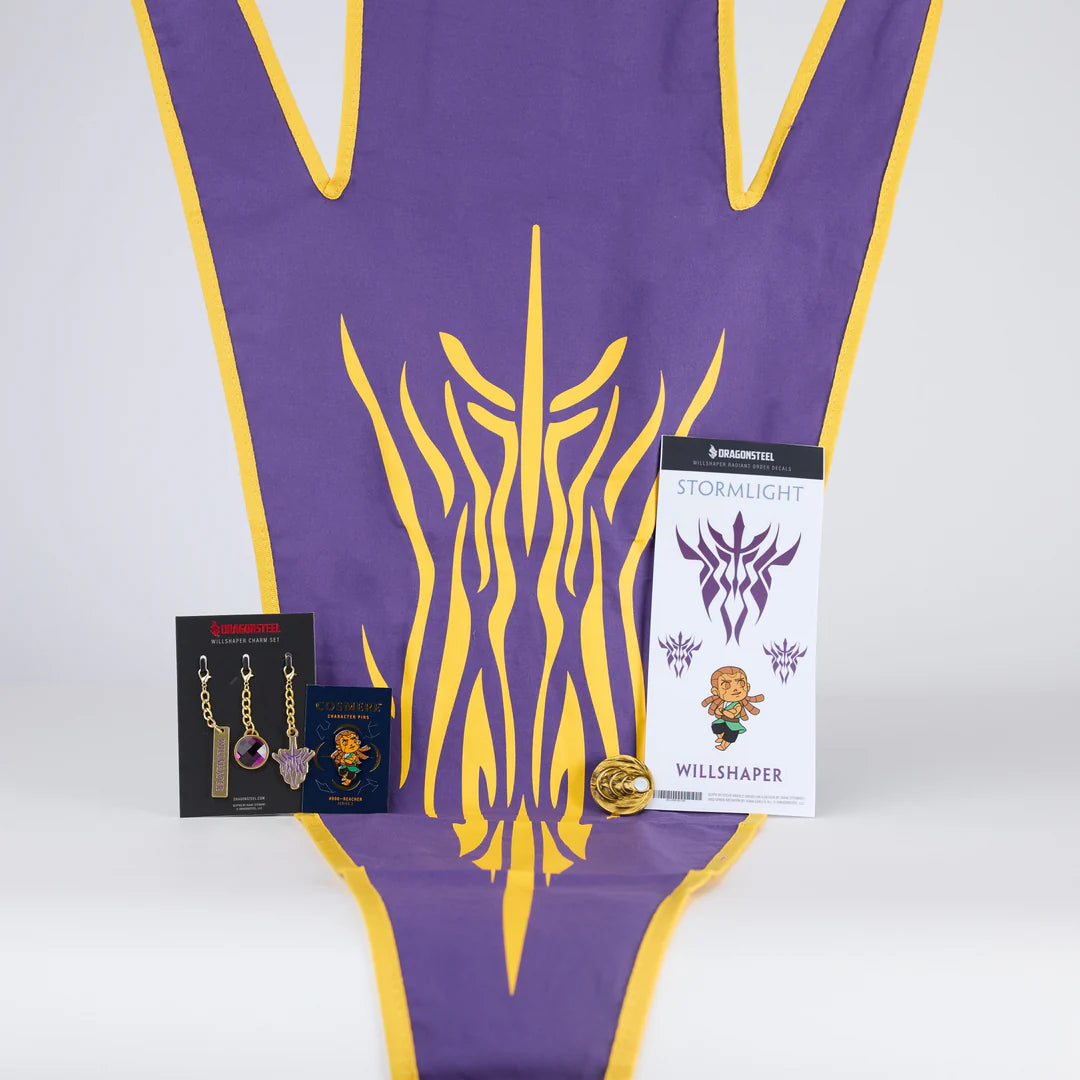 The Willshaper Radiant Pack celebrates Brandon Sanderson’s Words of Radiance with a curated collection of exclusive items. This elegant set includes a pin, stickers, a coin, a banner, and a charm set—each thoughtfully designed to honor the spirit of the renowned crowdfunding campaign. Perfect for collectors and fans, the pack offers a refined way to connect with the world of the Radiants.